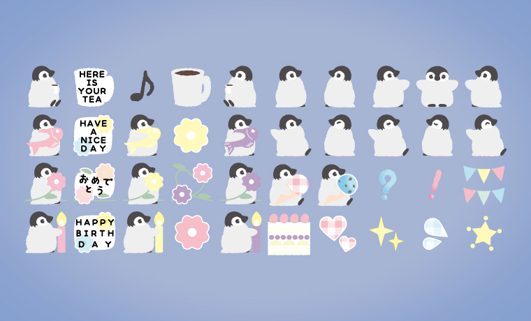 日常の単体スタンプとしても使えるよう、ひとつひとつ可愛く作成しました。